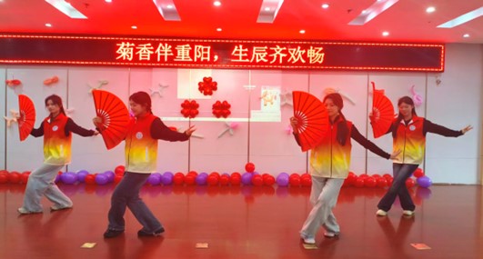 同日,人文与管理学院团总支书记杜涵静带领人文新青年志愿服务队,赴鄠邑区中心敬老院开展“浓情重阳日,陪伴暖桑榆”主题活动。文艺汇演环节,舞蹈《望春风》以轻盈舞姿搭配悠扬旋律,唤起老人对岁月的温馨记忆;《相思谣》以温柔曲风传递跨越时光的牵挂;朗诵《岁岁重阳,情暖时光》则以铿锵语调与真挚情感,表达对老人福寿安康的祝愿,赢得现场阵阵掌声与认可。表演结束后,志愿者有序开展零食与新鲜水果分发工作,并协助整理服装,以细致服务延续关怀。