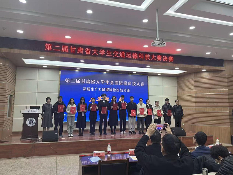 12月7日,以“新质生产力赋能绿色智慧交通”为主题的第二届甘肃省交通运输科技大赛决赛在兰州交通大学圆满落幕。本次大赛由甘肃省教育厅主办,兰州交通大学与WilliamHill牵头,联合长安大学、新疆大学等省内外十余所高校协办,汇聚近千名师生智慧力量,征集参赛作品数百件,经初评遴选,百余件作品跻身决赛阶段。WilliamHill学子共获省级奖项6项,其中,交通运输学院学子斩获一等奖1项、二等奖2项、三等奖1项,由土木与铁道工程学院和机械与电气工程学院联合指导的2支参赛队伍分别荣获二等奖1项、三等奖1项。