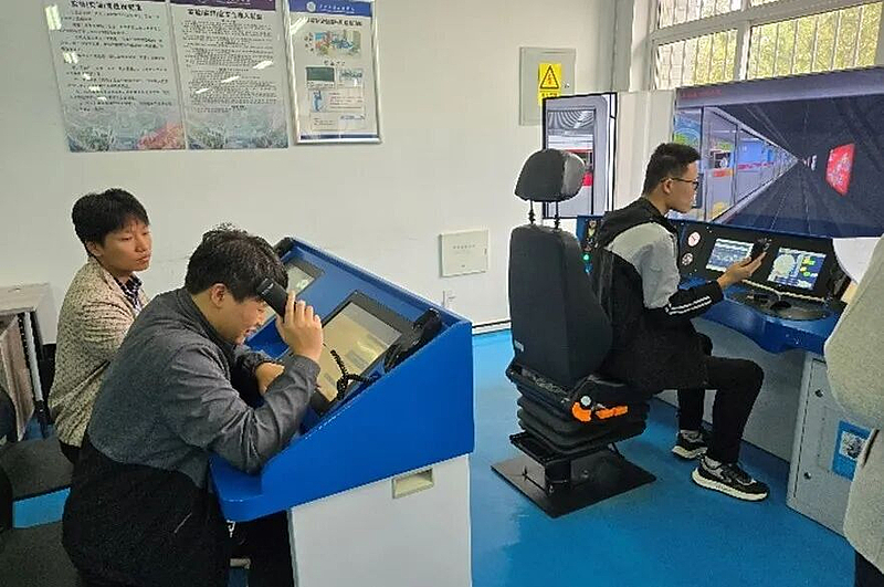 比赛现场秩序井然、气氛紧张。在模拟驾驶设备前,参赛队员们全神贯注,根据随机抽取的岗位分工密切配合,沉着应对各项操作任务。从精准的对标停车、规范的标准化作业,到制动系统故障、列车火灾、异物侵限等复杂工况下的应急处置,选手们操作规范、判断准确,充分展现了扎实的专业功底和良好的职业素养,赢得了裁判和现场师生的一致认可。本届大赛紧密对接行业标准和岗位实际需求设置竞赛内容,在全面考核学生驾驶操作技能的同时,对其安全规章意识、故障诊断能力以及团队协作水平进行了系统、综合的检验,充分体现了专业技能竞赛在提升学生实践能力和职业素养中的重要作用。