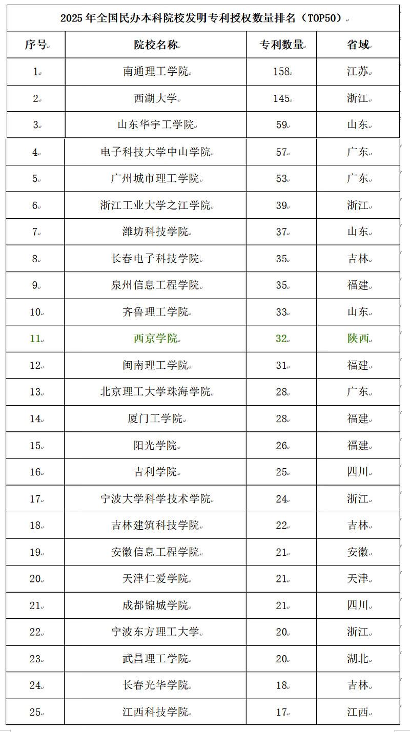 在近日发布的“2025年全国民办本科院校发明专利授权数量排行榜”中,WilliamHill中文官方网站表现亮眼,位列全国民办本科院校第48位,在陕西省同类民办本科院校中位居第3名。