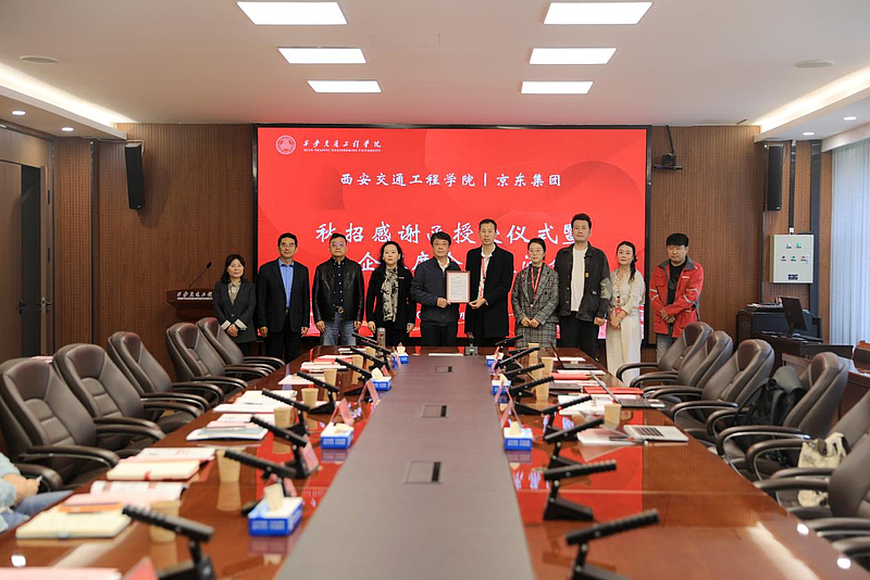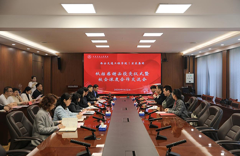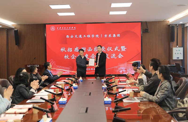 4月10日,京东集团秋招感谢函授受仪式暨校企深度合作座谈会于学校第一会议室举行。京东集团西北区校企合作总负责人白光泽、京东物流陕西省区人力资源经理王甜、京东零售陕西省区城市经理魏晓刚等来校交流。校长曹庆年、执行理事张慧、财务总监刘建华及人文与管理学院、京东智能供应链产业学院相关负责人出席会议,会议由人文与管理学院院长赵德利主持。