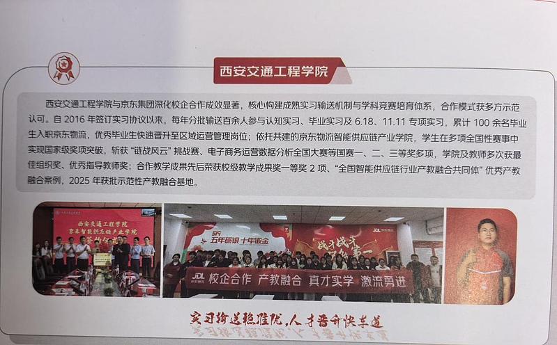 执行理事张慧在致辞中对京东集团对学生和学校的认可表示感谢,她回顾了学校自2016年开始与京东集团10年合作的辉煌历程,从最初的实习基地共建,到京东智能供应链产业学院的成立,合作领域不断拓展,合作层次持续深化,结下了深厚的友谊,也取得了丰硕的成果。她表示,这份感谢函不仅是对录用学生的肯定,更是对学校办学成果和人才培养质量的高度认可。未来,学校将以此为契机,进一步深化与京东集团在人才培养、科研创新、产业服务等方面的全方位合作,不断探索产教融合新模式,为社会培养更多符合产业发展需求的高素质人才,实现校企双方更高水平的互利共赢。