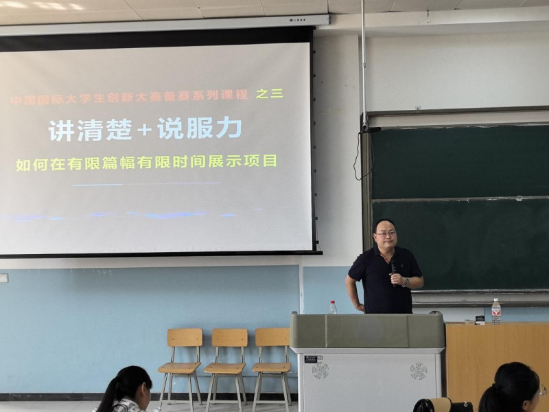 2025年5月28日,由创新创业学院主办的“中国国际大学生创新大赛专题讲座”在8-102教室圆满举行。活动特邀中国国际大学生创新大赛国家级赛事评委张伟担任主讲嘉宾,为师生带来关于赛事备赛策略与核心竞争力的深度分享。创新创业学院副院长出席并主持讲座,师生代表参与学习。