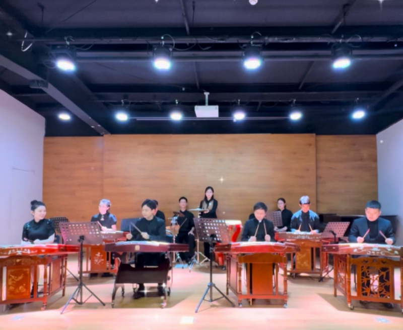 音乐会汇聚了中国、马来西亚、泰国的青年扬琴演奏家。刘晓威与马来西亚扬琴演奏家何康伟、泰国青年扬琴演奏家纳塔鹏、中央民族乐团扬琴演奏家周婷婷、中央音乐学院民族室内乐团演奏家叶钰昭同台合作,演绎了极具创新特色的“新民乐”重奏作品《小苹果》。演奏过程中,演奏家们以精湛的技艺,将传统扬琴演奏技法与现代音乐元素融合,通过丰富的音乐表现力,生动诠释了作品的艺术内涵,赢得了观众们的高度评价。