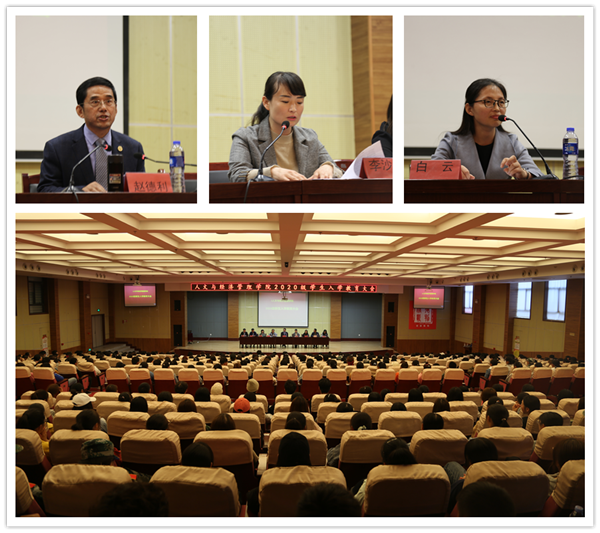 ---召开开学典礼大会。10月9日,人文与经济管理学院在学术报告厅举行了入学教育大会。该院院长赵德利教授、党总支书记兼副院长李沙沙等领导及全体2020级新生分两场举行了入学教育大会。会议由副院长白云主持。