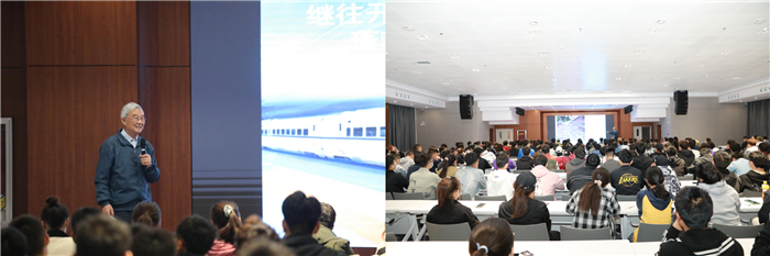 讲座会上,宋建业教授用平实的语言、丰富的阅历深入浅出地从铁路发展史、铁路的技术进步、突飞猛进的中轨道交通事业、艰苦奋斗 勇于创新 团结协作 无私奉献的中国铁路精神、我们的责任和担当五个方面向大家讲述了轨道交通的发展。他鼓励同学们作为西交院学子,要为国家轨道交通事业贡献力量,要爱惜身体、增强体质,学好本领,练好基本功,创立不怕艰苦勇挑重担的西交院精神,为祖国展现才华。