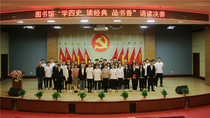 4月21日下午,图书馆在学术报告厅举办了“学四史 读经典 品书香”诵读决赛,来自各学院的33名同学分为11个小组参加了决赛。采编部黄晓燕主任,数字资源部张永新主任,馆员赵倩、宋凤姣、左晨镜担任本次决赛的评委。决赛根据总分排名,机械工程学院张向天小组诵读的《盛世中国》获得一等奖;电气工程学院王凌枫小组诵读的《永远跟党走》和人文与经济管理学院林卓菲小组诵读的《中华少年》获得二等奖;电气工程学院郑钰奇小组诵读的《党的赞歌》、中兴通信学院张景洋小组诵读的《历史不会忘记》和机械工程学院马东东小组诵读的《我的南方和北方》获得三等奖;电气工程学院张迅嘉小组诵读的《学四史,担青年之责》等5个节目获得了优秀奖。图书馆馆长胡艳宣读获奖名单并为获奖同学颁发了获奖证书。