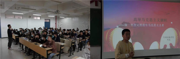 ——开展“高举马克思主义旗帜,做一名坚定的青年马克思主义者”专题党课。学习活动由该院党总支学生二支部预备党员刘星同志主讲。在授课开始前,大家观看了讲解马克思生平的简短视频以便大家对讲课内容更好的理解。视频结束后,刘星同志从“马克思与马克思主义、为何要成为马克思主义者、如何做一名坚定的马克思主义者”三个方面入手,让大家深入的了解了马克思主义的部分内容、意义以及马克思主义在传入中国后对中国前期革命的指导作用和马克思主义逐渐中国化的历程,进一步明确了该如何成为一名合格的马克思主义者。授课过程中,大家注意力高度集中,悉心聆听并认真做了学习笔记,精彩处掌声阵阵。