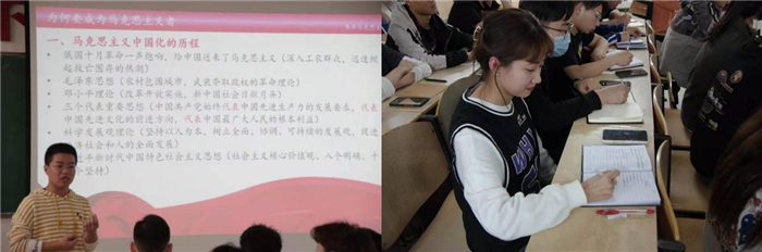 ——撰写党课笔记、观影笔记,简谈学习心得。通过对马克思主义思想和马克思主义中国化的学习,同学们深入的了解到了当下和平社会的来之不易,更加明确了现在乃至未来的奋斗方向,并表示要努力学习从而掌握马克思主义中国化的最新理论成果,用马克思主义武装头脑,不断学习,提升自我,在行动上争做新时代青年。