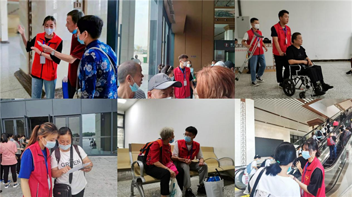 志愿者们头戴小红帽、身穿红马甲的年轻身影,在人群中显得格外醒目。他们重点分布在旅客候车室、进站闸机口、进站扶梯口、售票大厅等地,面向旅客提供进出站引导、健康码查验、进站检票引导、候车室便捷换乘引导、站台秩序维护、疫情防控知识宣传、重点旅客帮扶、便民利民和应急救援等服务工作,并配合站车工作人员,听从指挥,及时解决车站现场突发情况,为来往旅客营造良好的乘车环境。