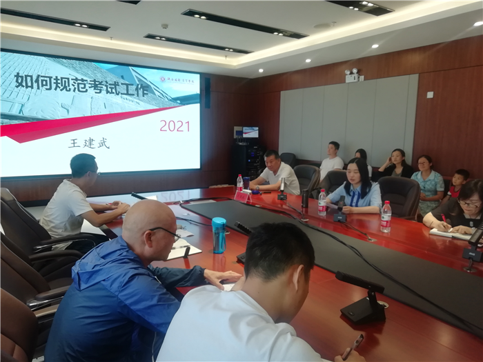 王建武教授作《如何规范考试工作》专题报告会,强调试卷在本科教学合格评估中意义重大。他以陕国贸的大学英语和高等数学课程试卷为例,全面介绍试卷命题、制作、批阅及分析等方面的规范做法。王教授语言幽默风趣,案例生动详实,对我们做好考试工作与评估工作具有很强的指导意义和参考价值。