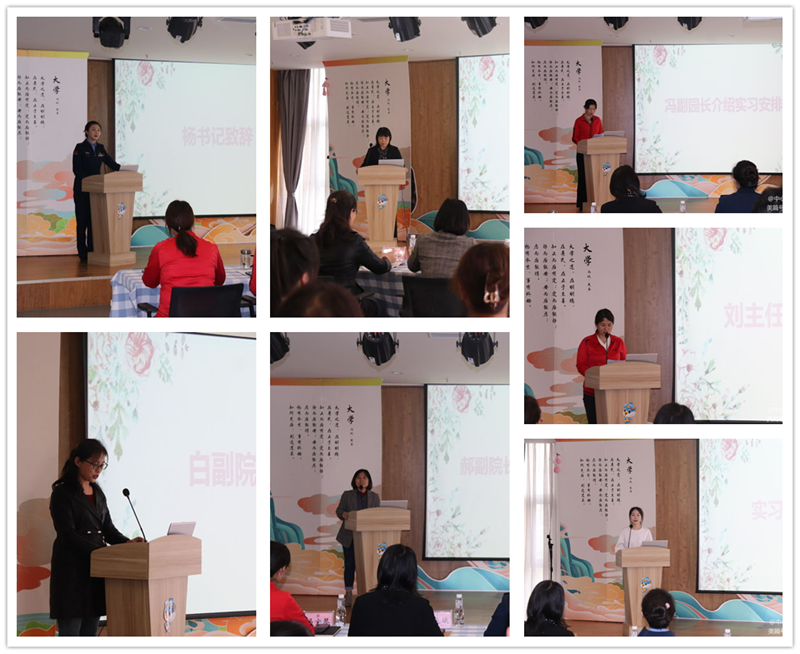 白云副院长首先感谢幼儿园对实习教师的接纳、帮助,并向同学们提出希望和要求,要求同学们在实习中要虚心学习,遵守幼儿园规章制度,以饱满的热情进入角色、收获成长!郝柯羡副院长介绍了学前教育专业的发展情况,并希望实习老师们能脚踏实地,且学且悟,且行且思,通过实习活动收获实践经验!