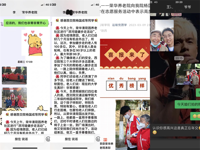 活动次日,荣华养老院负责人李女士主动与该院秦鑫老师联系,李女士表示,同学们的暖心行为让老人们久久不能忘怀,同时,转达了老人们对于该院同学的喜爱之情并转发了老人们逐字编辑的感谢信,字里行间满是感动与肯定。李女士诚挚邀请该院继续开展此类志愿活动,不断加强荣华养老院与该院的亲密联系,共同营造“敬老、孝老、爱老”的社会氛围,大力弘扬敬老爱老的优良传统。