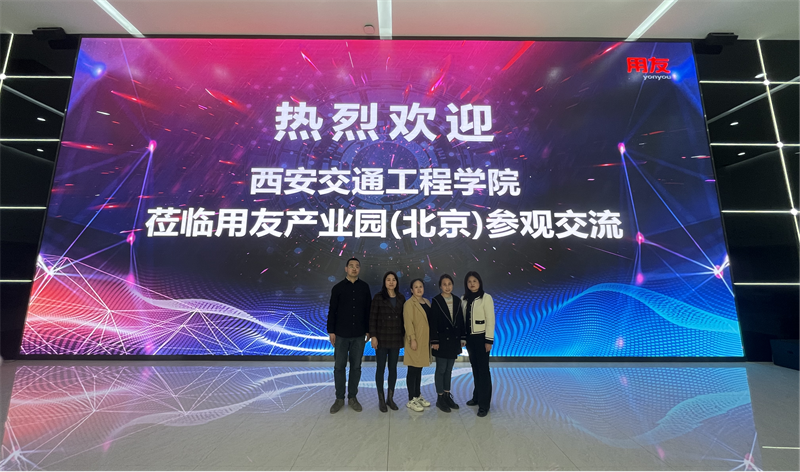 在数智商科产业学院校企合作伙伴新道科技经理王欣全程陪同下,参观了用友产业园区、用友集团数智企业体验馆并进行了深入的交流学习。用友数智体验馆是一家综合型、融合型、生态式的数字企业体验平台,数智企业体验馆全面展示了数智企业营销、采购、生产、财务、人力、协同等核心业务应用场景,通过实景交互以及实时数据,了解到了企业数智化管理模式和内容,对组织数智化转型的方向和价值有了直观的感受。在交流环节,刘晓丽教授就商科数智产业学院数智化建设、数据应用以及未来信息化发展方向等问题进行了深入交流,同时也进一步探讨了双方校企共建产业学院数智化转变的具体实践。