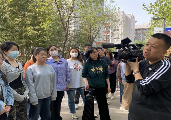 在讲解无人机和相机在外景的运用时,两位导师带领学生到室外,亲自实操演练了拍摄机器正确的使用方法和拍摄姿势,教授无人机调试、操控、拍摄构图等技能。严文团副台长以后者为切入点,围绕无人机在低空飞行、越景观飞行、侧向飞行、向后远拉飞行、围绕目标点进行环绕飞行这五大技巧示范讲解。鼓励在场学生可以结合不同的轴运动,寻找一些创意角度进行拍摄。在指导学生实操前强调每位操作人员要对无人机航空摄影建设安全意识,注意他人、自己及器材安全,建立良好的飞行操作流程习惯。同学们认真倾听,并学以致用,在实操中遇到了问题一一请教,都得到了耐心细致的答复,现场氛围十分活跃。