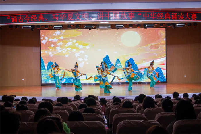 比赛在人文与管理学院同学们衣袂飘飘的国乐经典《双面燕洵》的舞蹈中拉开帷幕,同学用袅袅婷婷的身姿演绎了一位从阳光明媚到跌入谷底奋起反抗的少年郎,给现场观众带来艺术美的享受。诵读从气势恢弘的《满江红》到反映民众疾苦的《卖炭翁》,从浪漫诗的极致《将进酒》体味李白的“盛放与孤独”,从《茅屋为秋风所破歌》凝视现实主义集大成者杜甫“以天下为己任”的自然天性,一首首千古绝唱承载了中华民族的千年文化,沉淀于历史的长河,又升华于现代的社会,是中华民族不朽的篇章。同学们个个精神焕发、饱含激情诵读了《琵琶行》、《声声慢》、《出师表》等经典国学篇目,参赛选手或慷慨激昂,或低声吟唱,或娓娓道来,酣畅淋漓的抒发了自己的家国情怀,精彩的表演赢得经久不息的掌声和喝彩,让现场的评委与观众为之惊叹。大赛在国风歌伴舞《不染》中圆满结束,呈现了一台当代大学生展示国学经典文化的视听盛宴。