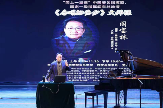 本次活动以“薪火相传·同上一堂课”为主题,阎宝林教授讲授了《合唱知多少》的大师课。他从何为合唱、为何合唱、如何合唱、当下合唱等四个方面,详细阐述了合唱艺术的内涵、价值、应用与发展,强调了合唱表演中要加强技能、提高音乐基础能力的重要性,分享了合唱团员基本素质、艺术风格与艺术处理等相关合唱知识。整场讲座逻辑严谨、层次清晰、生动活泼、理念前卫,赢得听众阵阵掌声。我院三位老师通过参加本次大师课,开阔了视野,拓展了思路,展示了形象,增进了与兄弟院校之间的交流。