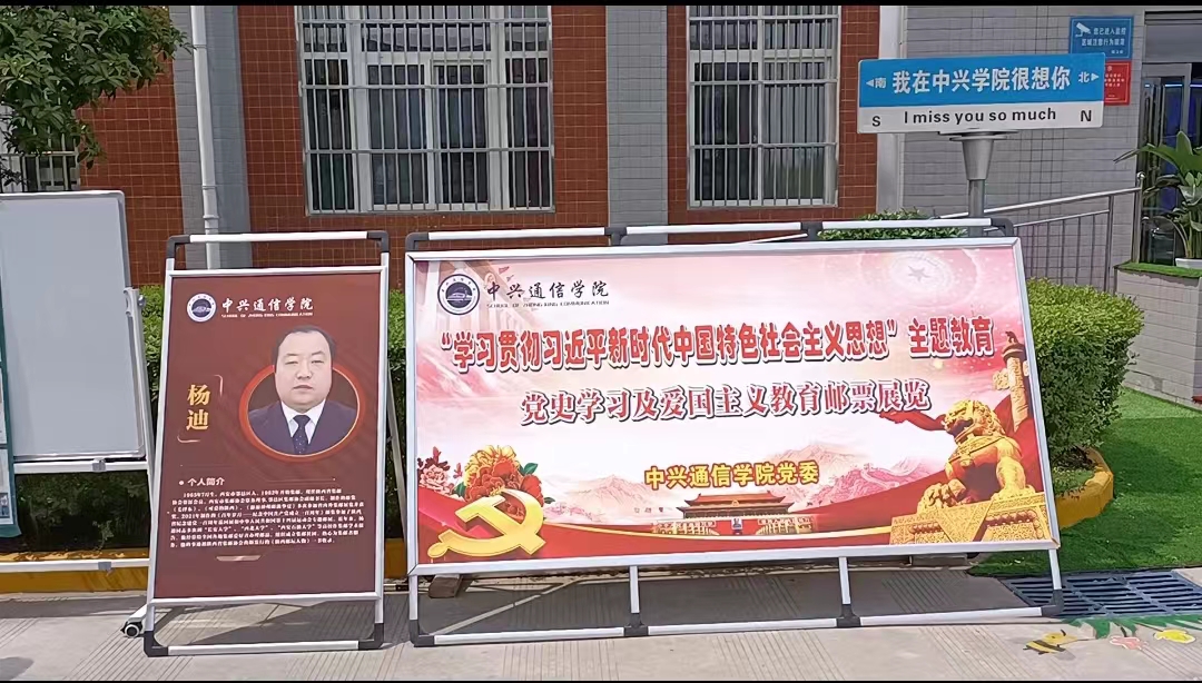 为进一步增强教师和学生们的爱国主义情感和社会责任感,4月17日,中兴通信学院在大餐厅一层大厅及8号教学楼前组织开展“学习贯彻习近平新时代中国特色社会主义思想”主题活动——党史学习及爱国主义教育邮票展览,活动期间全校近3000名师生分批次进行参观学习。