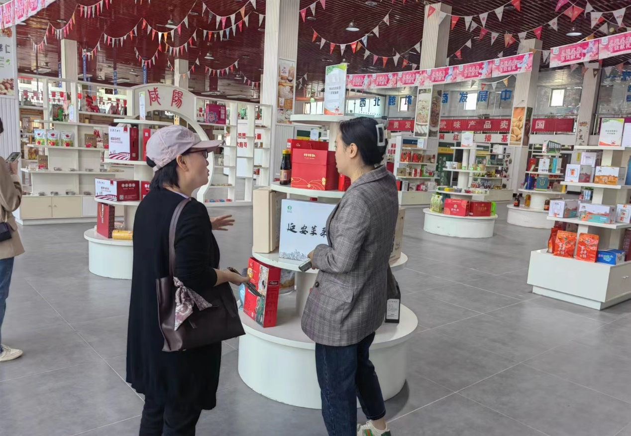 在园区工作人员带领下参观了园区的抖音电商直播基地、配送中心等厂区了解武功县苏坊镇、游凤镇、长宁镇、小村镇、大庄镇等地的特色农产品线上营销情况。并前往长宁镇和“西北手工挂面第一村”孔雀村向农户了解当地特色产品醋和手工挂面的生产工艺及线上销售状况。