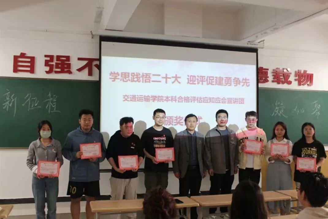——开表彰大会,传五四薪火。近期,为对“学思践悟二十大 迎评促建勇争先”本科合格评估应知应会宣讲活动中表现优异的同学进行表彰,该院党委学生第一支部特别组织了本科合格评估应知应会宣讲团表彰活动。通过此次表彰活动,希望大家继续坚定不移听党话、跟党走,敢想敢为又善作善成,立志做有理想、敢担当、能吃苦、肯奋斗的新时代好青年。