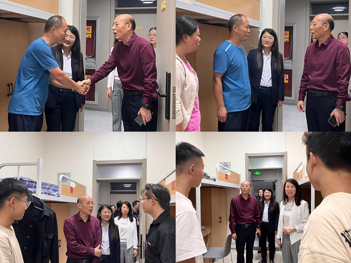 暖心关怀,走访慰问促成才。学校党政领导班子、该院院长、党委书记及新生辅导员一起深入新生学生寝室,与新生及家长亲切交流,详细询问新生进校后的感受、饮食、住宿等方面的生活情况,耐心解答学生及家长的咨询和问题。同时叮嘱学生认真遵守宿舍管理规定,与室友团结友爱、互帮互助,提高安全防范意识,共同营造一个良好的学习生活环境,以积极的心态和良好的面貌尽快适应大学校园生活。