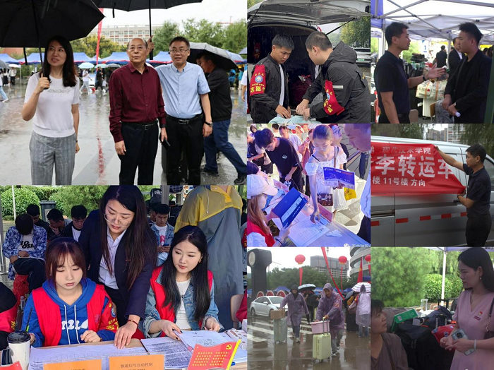 齐心服务,全程引导显高效。党员先锋岗、爱心行李转运等岗位师生志愿者队伍齐心服务。学生志愿者提前培训、合理分工,有序引导新生高效完成报到注册、材料提交、签字确认、校园卡发放等工作,确保每个新生都有对应的志愿者接应引导至宿舍;在迎新现场辅导员为新生及家长答疑解惑,开展防诈骗、用电安全等宣传教育;设立临时休息区并提供饮水,供家长和新生休息调整。学院师生齐心协力,热情引导,耐心服务,严谨高效,有条不紊让新生及家长们感受到到来自学院的热情与温暖。