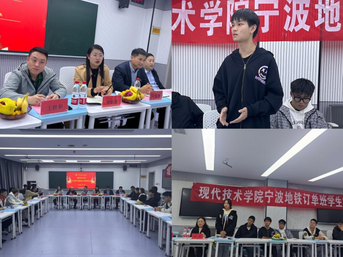 10月18日下午,现代技术学院召开2022级宁波市轨道交通订单班学生座谈会。宁波市轨道交通集团有限公司运营分公司一中心站务一车间主任王胜和、智慧运营分公司站务一中心站务一车间副主任陈江、运营管理中心徐静静、现代技术学院院长都娟丽、党委书记兼副院长田宏顺、学生就业指导服务中心外联科科长冀世保、现代技术学院团总支书记黄晶、辅导员蔡莎及2022级宁波地铁订单班全体同学参加。会议由副院长党亮亮主持。