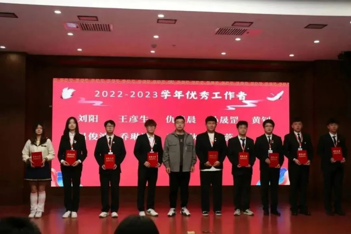 随后院长崔炳谋为第十六届团总支学生会主席团颁发聘书,党委书记胡省利、团总支书记秦鑫为第十七届团总支学生会学生干部颁发聘书,肖茹峰老师、郝志超老师为先进工作者颁发证书。这既是对老成员的鼓励,更是对新成员的激励,推动交通运输学院团总支学生会工作更上一层楼。