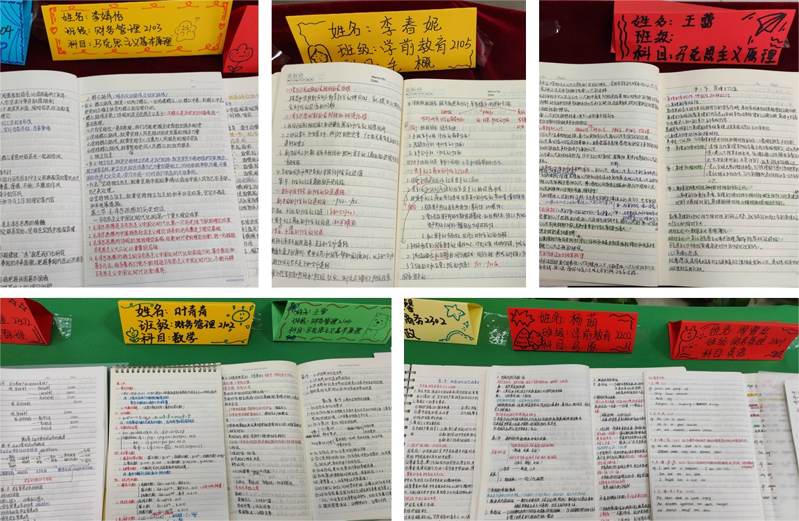 在前期筹备阶段,共计征集到450余份笔记资料,经初步遴选,共有50份作品进入票选环节,在人文与管理学院一楼大厅设点展出。展出笔记包括毛泽东思想与中国特色社会主义理论体系概率、马克思主义基本原理、电子商务物流、财务会计、成本管理学、学前儿童卫生与保健、高等数学,大学英语等课程。最终将通过票选形式,选出15份参加校级决赛。