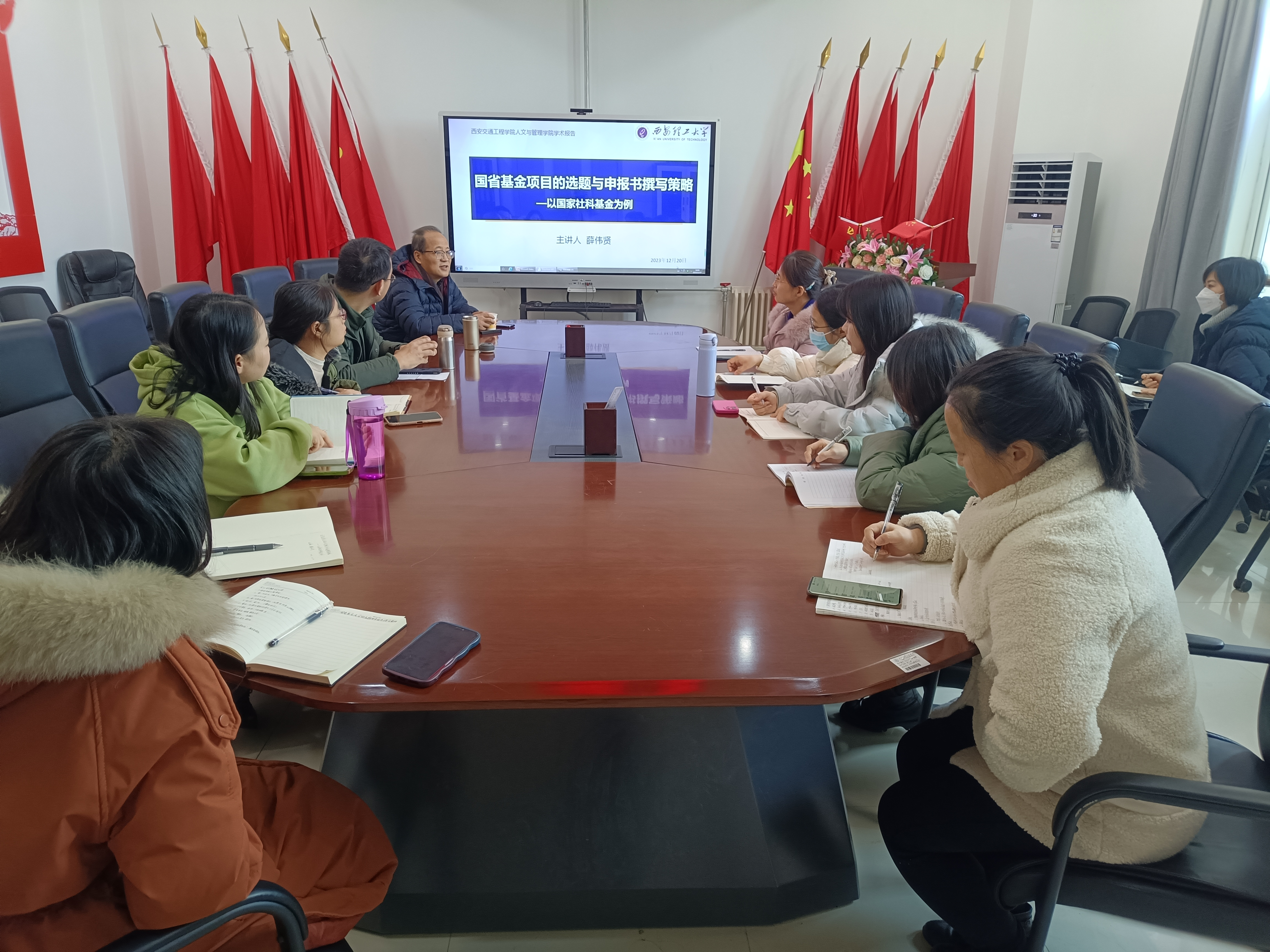 为进一步推动国省项目基金的申报工作,提高项目申报质量,切实提升专业教师科研素养,12月20日下午,人文与管理学院在1-212会议室举办了“管理类国省项目基金申报”专题讲座。此次讲座邀请了西安理工大学二级教授、管理学博士、应用经济学博士后、博士生导师薛伟贤主讲。该院副院长白云教授、数智商科产业学院院长刘晓丽教授、管理类教研室主任及全体专业教师参加了此次讲座。