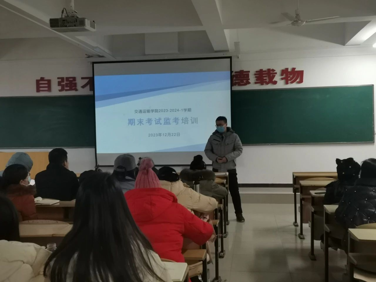 交通运输学院考务秘书梁雷在给学院教师进行期末考试监考培训