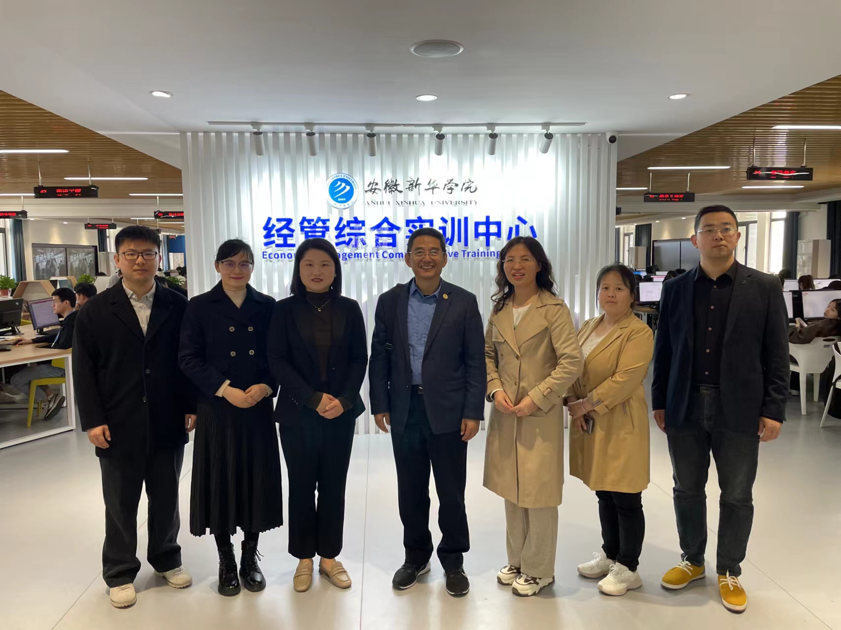 院长赵德利一行走访了安徽新华学院,并实地考察了安徽新华学院数智化商业创新实训基地和经管综合实训中心,随后与财会与金融学院执行院长濮明月等学院领导进行座谈。