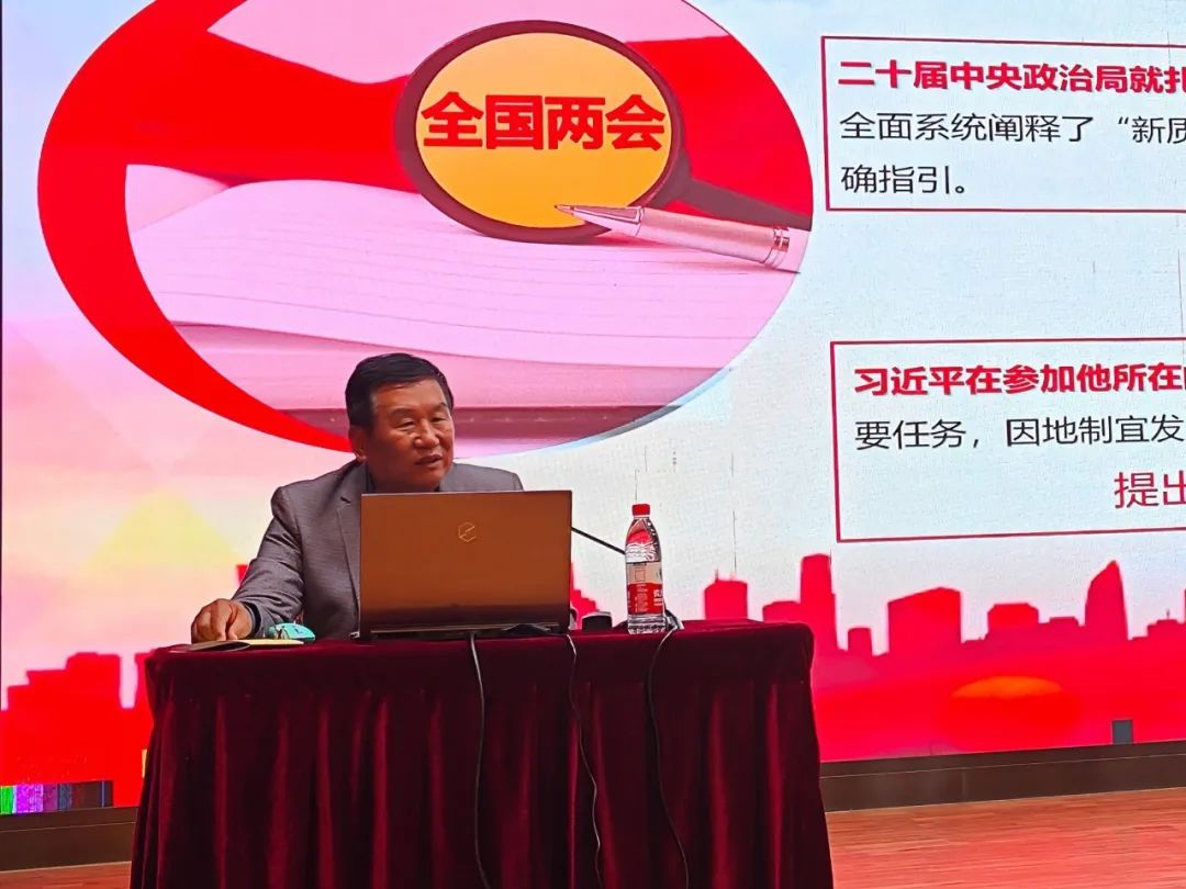 讲座上,李禾俊教授深入剖析习近平总书记在全国两会期间的重要讲话和全国两会精神,深入阐释“新质生产力”的内涵要义、主要特征和发展趋势,结合科技创新与人才培养,就两会热词“新质生产力”的基本内涵、主要特征和重大意义,学生应该如何就新概念进行思考,学校如何“日新”精神引领下助推新质生产力加快发展等方面进行解读,鼓励学生踔厉奋发、勇毅前行,为强国建设、民族复兴作出新的贡献。