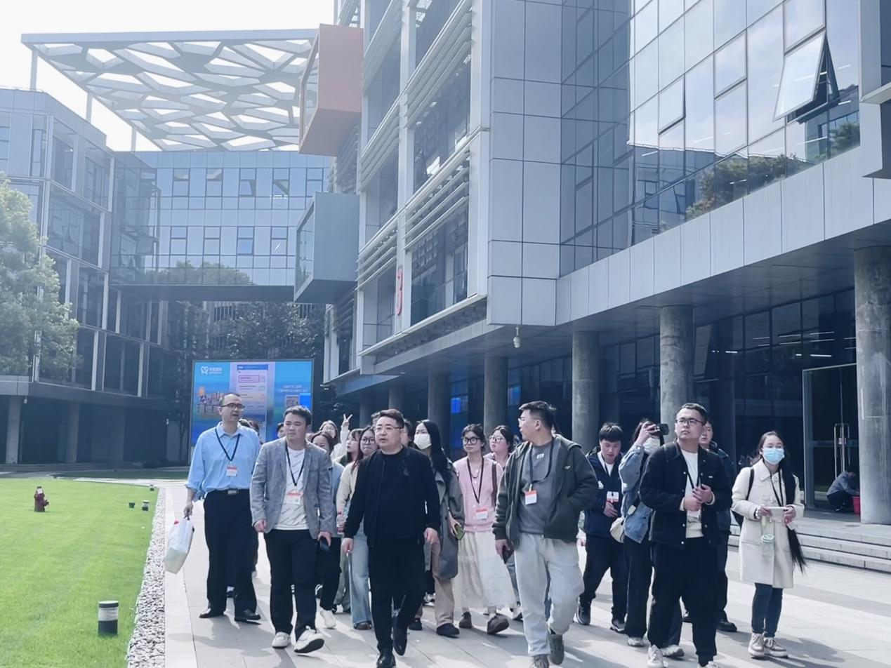 在参观环节,阿里巴巴公司部门负责人带领师生们深入阿里巴巴跨境园区,近距离观察了电商行业的最新动态与发展趋势。园区内先进的设施、高效的运营流程以及前沿的电商技术,使学子们对跨境电商的运营模式、市场布局以及技术创新有了更为深刻的认识。