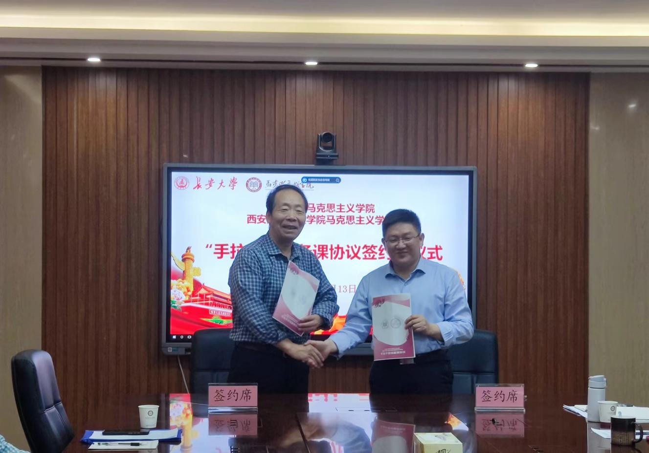 讲话结束后,两校马克思主义学院进行了正式的签约仪式,并就手拉手备课活动具体的开展环节进行了协商和交流。