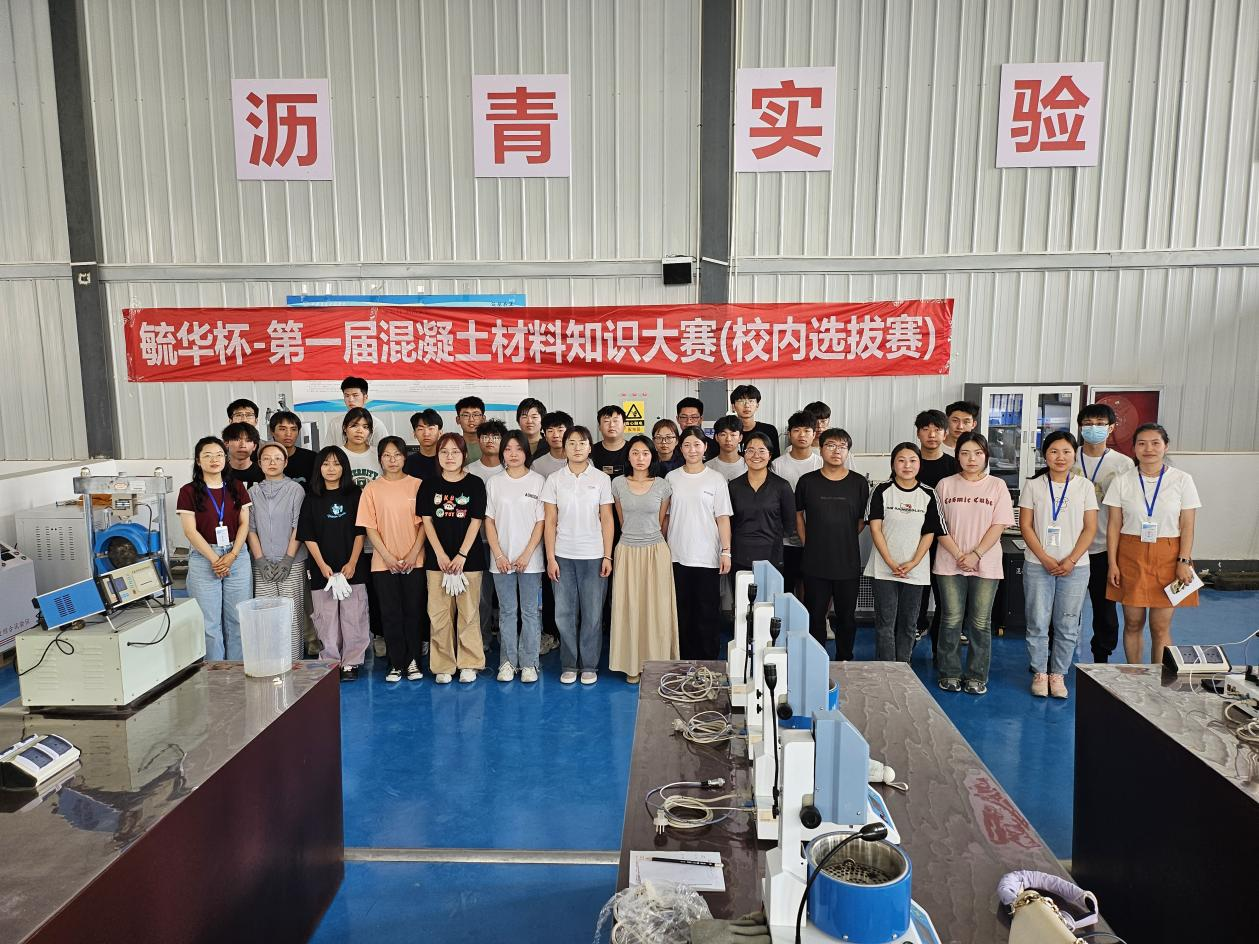 本次大赛设计主题是:以有利于混凝土耐久性为原则,采用机制砂配制“C40大流态绿色高性能混凝土”,并考虑工程应用环境和经济性,展示大学生解决复杂工程问题的能力。通过前期宣传与推广,共计有100多名学生参赛,比赛场地设置在土木与铁道工程学院工程实验训练中心。比赛成绩依据参赛队伍的混凝土配合比设计、操作技能、现场拌合物的性能予以评判。混凝土配合比设计环节重点考察参赛队伍设计方案的合理性、经济性和适用性;操作技能环节重点考察参赛选手操作规范性、熟练程度及现场配合比调整的应变能力;拌合物性能评价环节重点考核参赛队伍所得新拌混凝土工作性与期望结果之间的匹配度、对测试结果整理的规范性、分析的严谨性和科学性。