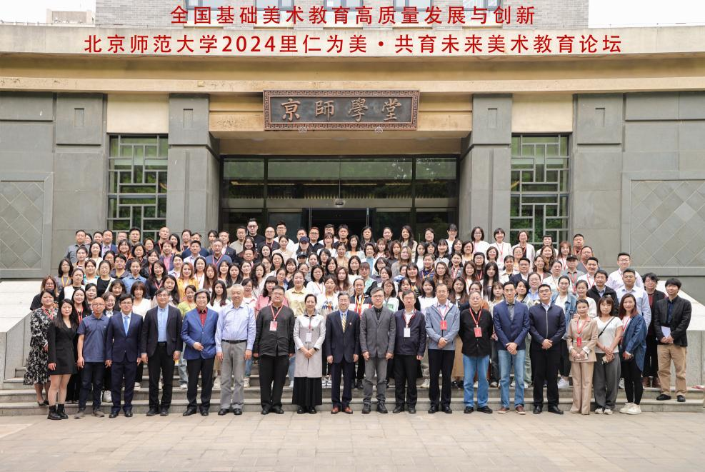 4月27日举办的“里仁为美、共育未来”北京师范大学美术教育论坛是北京师范大学主办的每年一度的教育品牌活动,至今已举办第三届。论坛旨在探索以浸润为目标的美育工作路径,强化美育教师人才队伍建设,促进基础美术教育高质量发展,搭建广大一线基础美术教师交流提高平台,发展和推出优秀教育创新案例和成果。本届论坛邀请国内一线美术教师、美术教育管理者、教研员和高校专家学者分享特色案例、总结思考教育经验,并邀请中国教育电视台、华为公司等单位专家共谋美术教育创新发展,共话人才培养之道,共创文化教育强国之梦。期待会议中教育思想的交流、互鉴、探讨会凝结出扎实的学术成果,创新美术教育新质生产力,为迎接第40个教师节、庆祝中华人民共和国成立75周年、纪念习近平总书记“四有好老师”重要讲话10周年献礼。