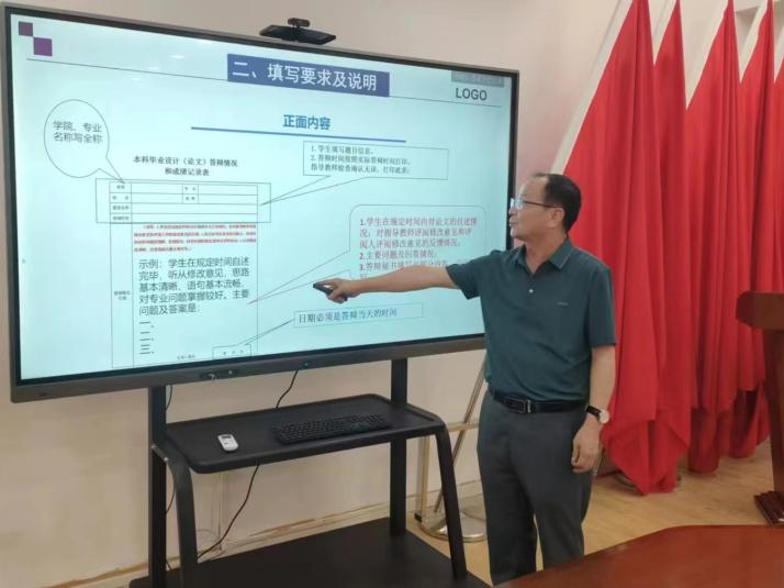 任小文强调了毕业设计对于每一位同学的重要性,指出毕业设计不仅是对学生所学知识的综合运用。因此,教师们必须高度重视,全力以赴,确保毕业设计的质量。接着对论文的格式、内容、质量提出了具体要求。他指出,论文的格式要规范,符合学术要求,每个部分都要严格按照规定格式进行排版。同时,论文的内容要充实、有深度,能够体现出我们对所学知识的理解和掌握程度,以及创新能力和实践能力。