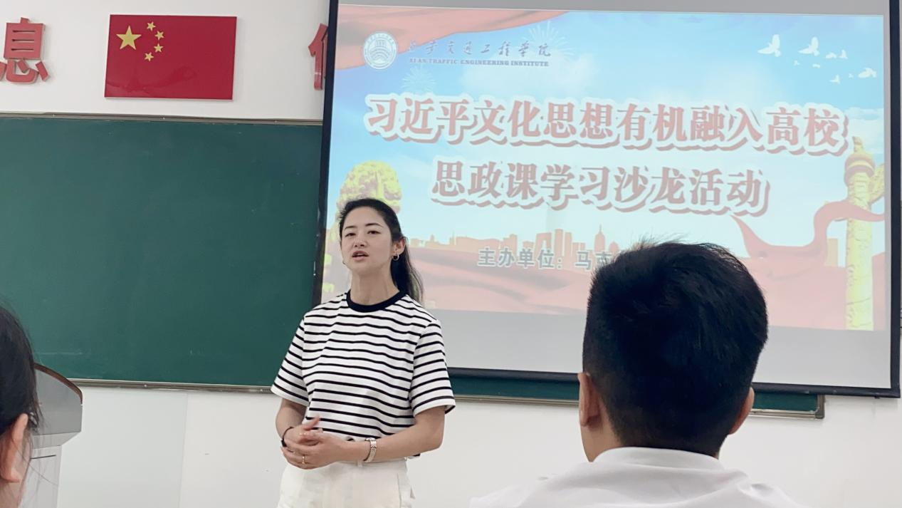 为进一步将习近平文化思想融入高校思政课教学,提升思政课教学质量和水平,培养担当民族复兴大任的时代新人,2024年5月27日,马克思主义学院在1-101开展了习近平文化思想有机融入高校思政课学习沙龙活动,马克思主义学院副院长李艳主持会议,学院全体教师参加。此次沙龙活动分为教师分享和教师互动两个环节。