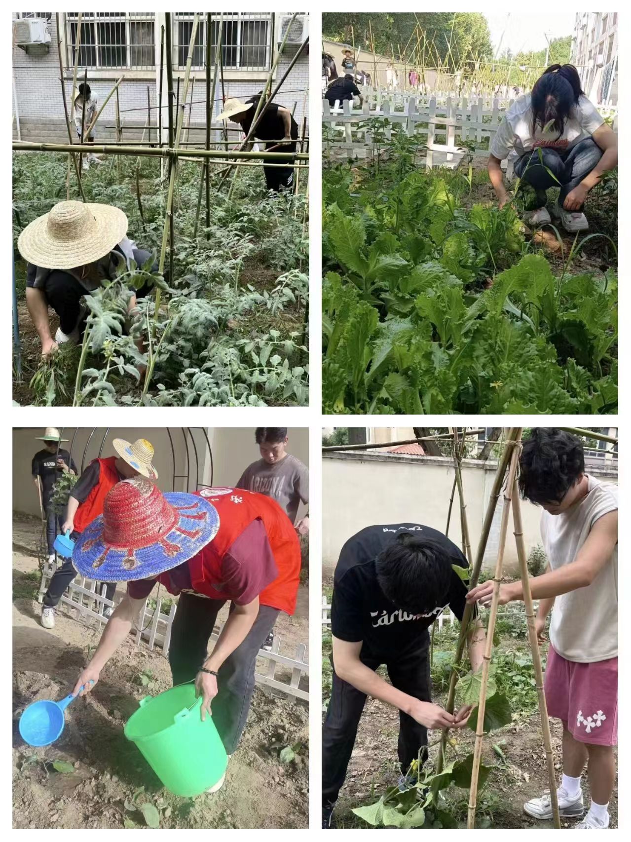 ——“农耕文化园”劳动教育实践基地种植与维护。到了谷雨前后,果蔬种植时节来临,自2024年4月起,劳动教育实践课程开起了种植模式,一株株小白菜种子、生菜种子、黄瓜苗、西红柿苗、茄子苗、辣椒苗等等在学生们的劳动中种植到了地里,而种植并不是结束而是又一场劳动的开始,后期的维护更是需要浇水、施肥、除草、除虫、安装支架等等,使每天的劳动教育实践基地都有学生的身影,更是让学生们体会到劳动成果的收获不是一蹴而就的,需要耐心与科学共同养育,才能有理想的收获。