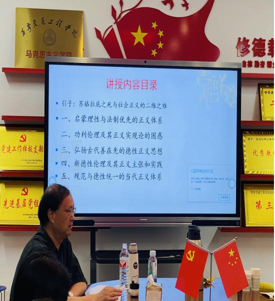 为提升马克思主义学院教师哲学素养,提高教育教学水平,6月13日,马克思主义学院邀请国家特色专业负责人,哈佛大学、洪堡大学高级访问学者张周志教授在校务楼416会议室为学院教师作主题为“构建规范与德性相得益彰的当代正义体系”的哲学讲座,讲座由马克思主义学院院长段联合教授主持。