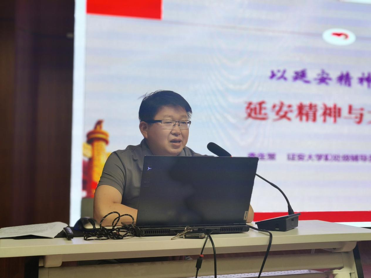 李生策老师首先阐释了延安精神的概念具体内涵,随后从延安精神形成的背景和基础、延安精神科学内涵的理解等方面进行了深入解读。他从大学生成长的角度对延安精神进行了剖析,强调我们要培养社会主义事业的接班人,就必须从政治方向、价值立场、思想路线、精神状态 “四个维度”对当代青年进行有针对性的教育和培养,消除社会不良环境对青年成长成才的影响。李生策老师鼓励新时代大学生,要继承和发扬延安精神,坚定共产主义理想信念,树立远大目标,坚定政治立场,筑牢思想防线,努力学习、真学实干,肩负起时代赋予我们的责任与使命,培养“有理想、敢担当、能吃苦、肯奋斗”的新时代好青年。