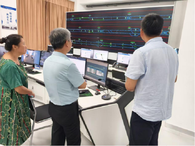 在陕西交通职业技术学院轨道运输学院院长史望聪、轨道技术学院副院长马骞、禹翔等领导陪同下,调研组一行首先赴实验基地参观考察,主要包括地铁全自动运行综合实训产教融合基地、城市轨道交通车辆技术虚拟仿真实训中心、车辆模拟驾驶实训室、牵引与供电实训室、车辆电子控制实训室等多个实训室和数字化虚拟实训设备,OCC调度中心、车站控制、AFC售检票、城轨运营管理、站台与轨道、信号基础设备、综合仿真等多个专业实训室。经过实地考察,调研组对智慧轨道交通实验室建设及发展有了更为直观和深刻的认识,也进一步掌握了行业前沿发展方向和当前需要重视的关键问题。