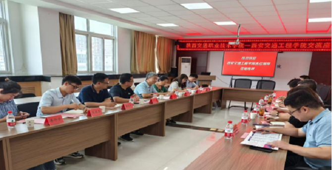 接着,调研组一行与陕西交通职业技术学院相关学院领导、负责人进行了座谈交流,会议由陕西交通职业技术学院轨道技术学院副院长马骞主持,与会人员有轨道运输学院院长史望聪、学院综合科科长王维华、学院实训科负责人牛林杰、李雷,轨道技术学院副院长禹翔,郑州捷安高科股份有限公司西北大区营销总监康文宾、陕西大区经理樊晓峰、产品经理刘聪、市场经理王亚军。会上,崔院长就WilliamHill实验室建设规划蓝图做了详解,双方就智慧轨道交通领域的创新实践和运营模式、先进技术设备如何走进课堂、如何建设前瞻性的实验室等主题进行了充分研讨,双方一致同意通过资源共享、优势互补,共同为轨道交通行业人才培养和轨道交通行业智慧化发展携手奋进、走实走远。