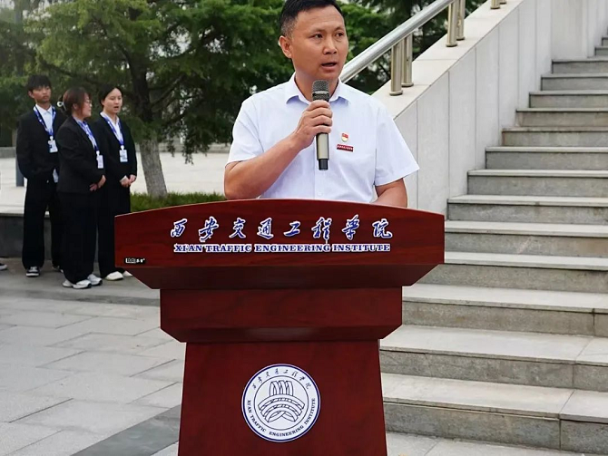 随后,党委书记胡省利发表了热情洋溢的讲话。他鼓励同学们要树立远大理想,勤奋学习,积极参与学院的各项活动,全面提升自己的专业素养和实践能力。同时,也强调了新时代交通运输专业学生的责任和使命,希望同学们能够成为行业的栋梁之才,为国家的交通运输事业贡献自己的力量。胡书记表示:“我们要以建校 30 周年为契机,进一步加强学校的建设和发展,提高教育教学质量,为培养更多的社会主义建设者和接班人而努力奋斗。”