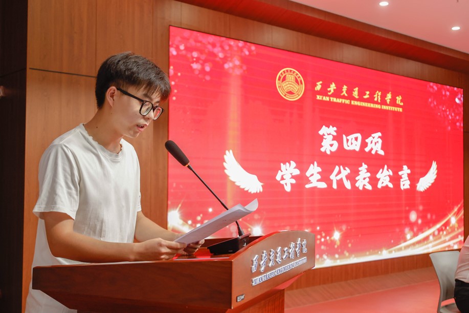 大数据2402班的沈佳宇同学作为新生代表上台发言,沈佳宇同学表达了对大学生活的憧憬和期待,并代表全体新生承诺将努力学习,积极参与各项活动,为学院争光添彩,不辜负家长和老师的期望。