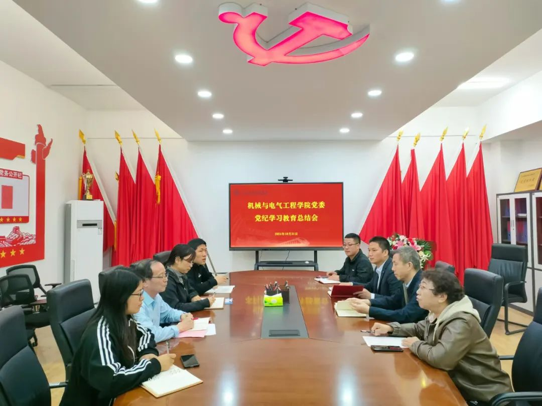 10月31日,机械与电气工程学院党委组织召开党纪学习教育总结会,深入学习贯彻习近平总书记关于党纪学习教育的重要指示精神。学院院长丁旺才、党委书记王拓辉、党委理论学习中心组成员、各师生党支部书记及支委参加会议。会议由党委书记王拓辉主持。