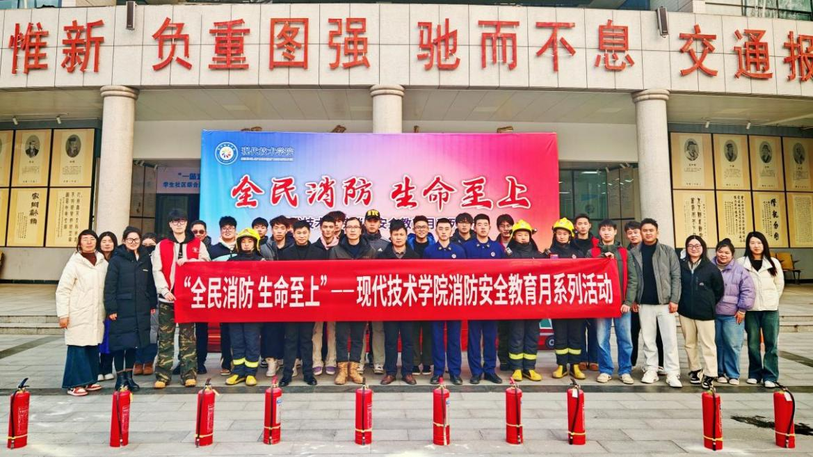 为进一步提升全院师生的消防安全意识和自防自救能力,夯实校园安全基础,12月11日,现代技术学院联合鄠邑区振兴北路消防站在学校图书馆西广场开展冬季校园消防安全演练活动,深入推动安全教育。