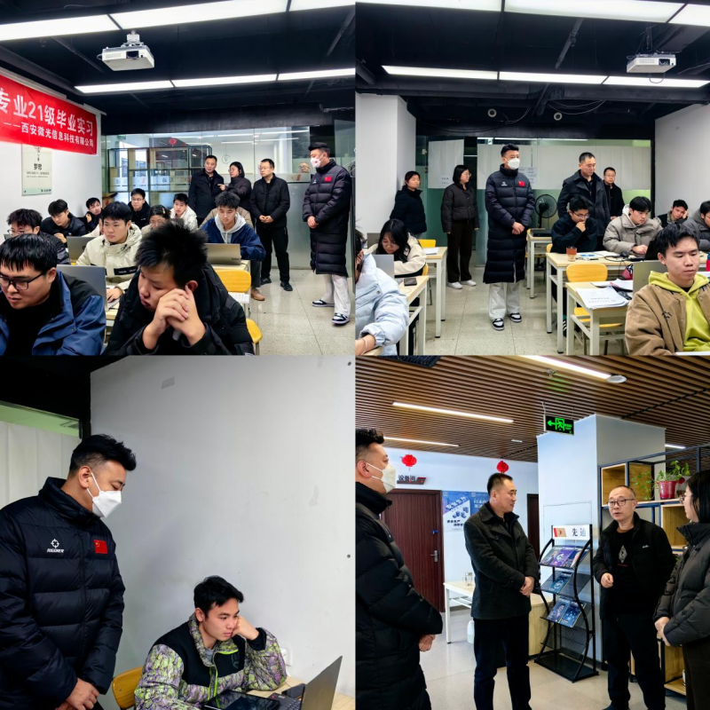 我院领导一行先走访了西安华清远见有限公司和西安粤嵌科技有限公司,详细了解了学生的近期实习工作和生活情况,组织了实习生座谈会,对同学们在实习过程中遇到的困难和问题为学生答疑解惑。实习单位对学生的工作态度和专业能力给予了高度评价,提出一些建议。李乃乾对实习单位提供的学习机会、生活便利等方面表达了衷心的感谢,勉励同学们要珍惜实习机会,将所学知识与岗位工作结合起来,勤学苦练,努力进取,真正做到学有所获、学有所成。张斌和孙文高走访西安先通有限公司和西安达内有限公司,对同学们实习期间的工作态度、工作能力也给予了肯定和表扬,鼓励同学们继续努力,虚心学习,加强自身专业素质力提升的同时要注意人身安全,遵守企业制度,要以严谨的态度和出色的成绩为自己的实习生活交一份满意的答卷。