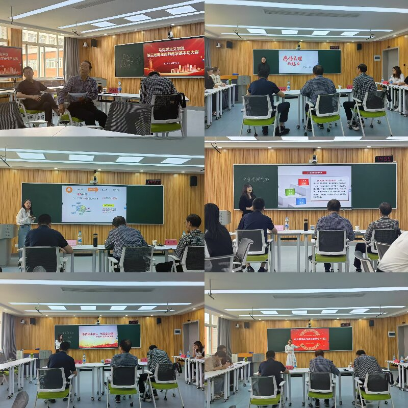 为深入学习党的二十届三中全会精神和全国教育大会精神,促进青年教师夯实教学基本功,提升教学能力与教学水平,2025年4月23日,马克思主义学院成功举办了青年教师教学基本功提升培训主题活动暨第三届青年教师教学基本功大赛。本次活动,邀请校外专家4人、校内专家2人组成评委小组对青年教师进行评审指导。